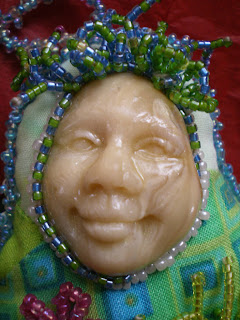 I have been remiss in posting pics of the wonderful little works of art I have been receiving for the Comfort Doll Project. I have contacted a shelter here in Auckland, but I think they must want you to work extra hard to give them stuff...I will have to ring again. I have one dozen and with these beauties I have received recently, possibly two.these lovelies are from my dear friend Leslie. Check out the 'blissful' face on the blue one. Leslie has a knack for faces, and this one is just gorgeous.